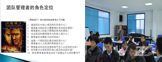 在培训的最后阶段,通过观赏影片《兵临城下》片段中的角色呈现,来联系管理者的角色定位,和日常工作中的实际应用示例。丰富的内容,知识点的呈现,让大家受益匪浅。